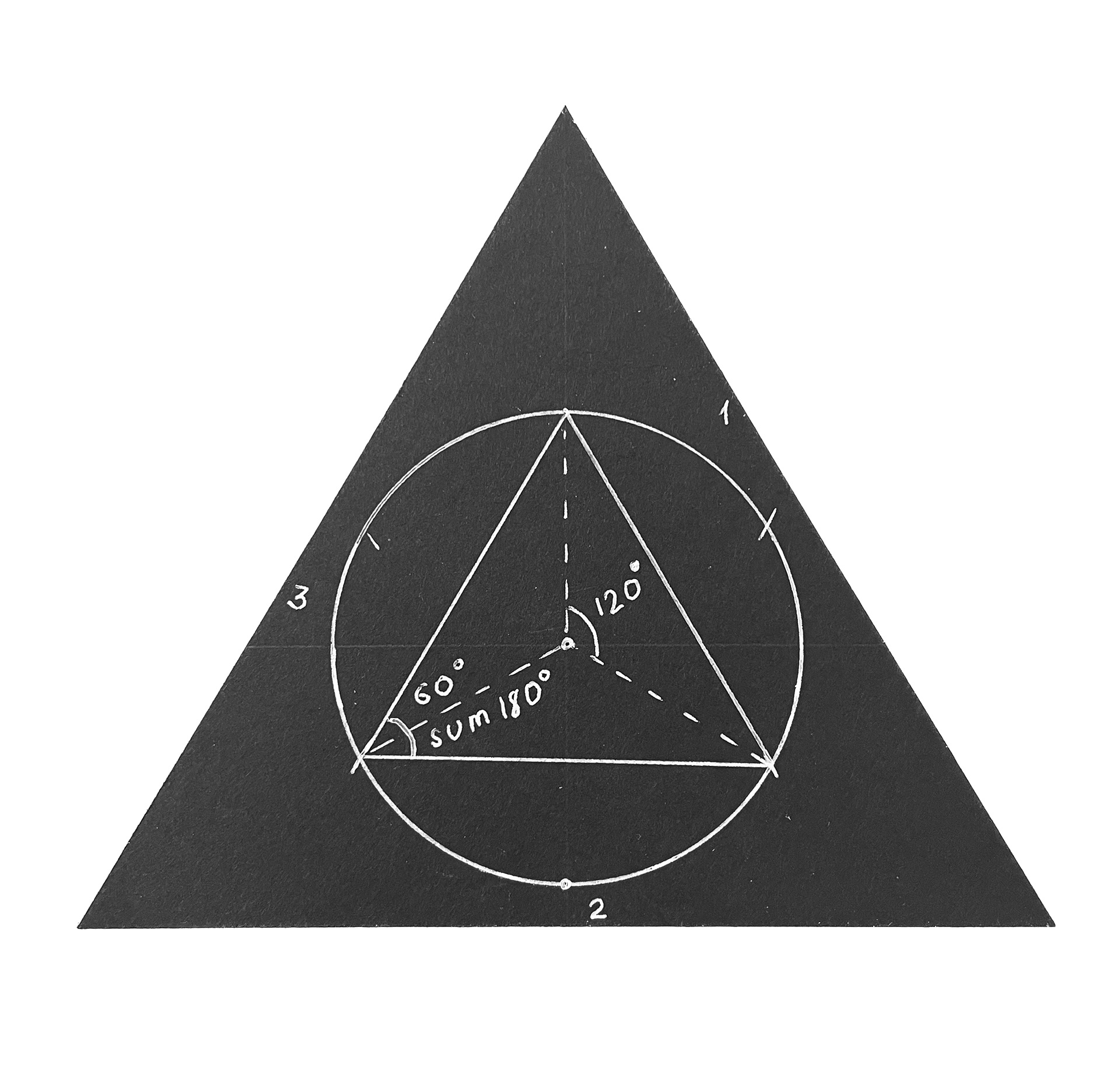 • The sum of interior angles in any triangle (regular or not) is always 180°
